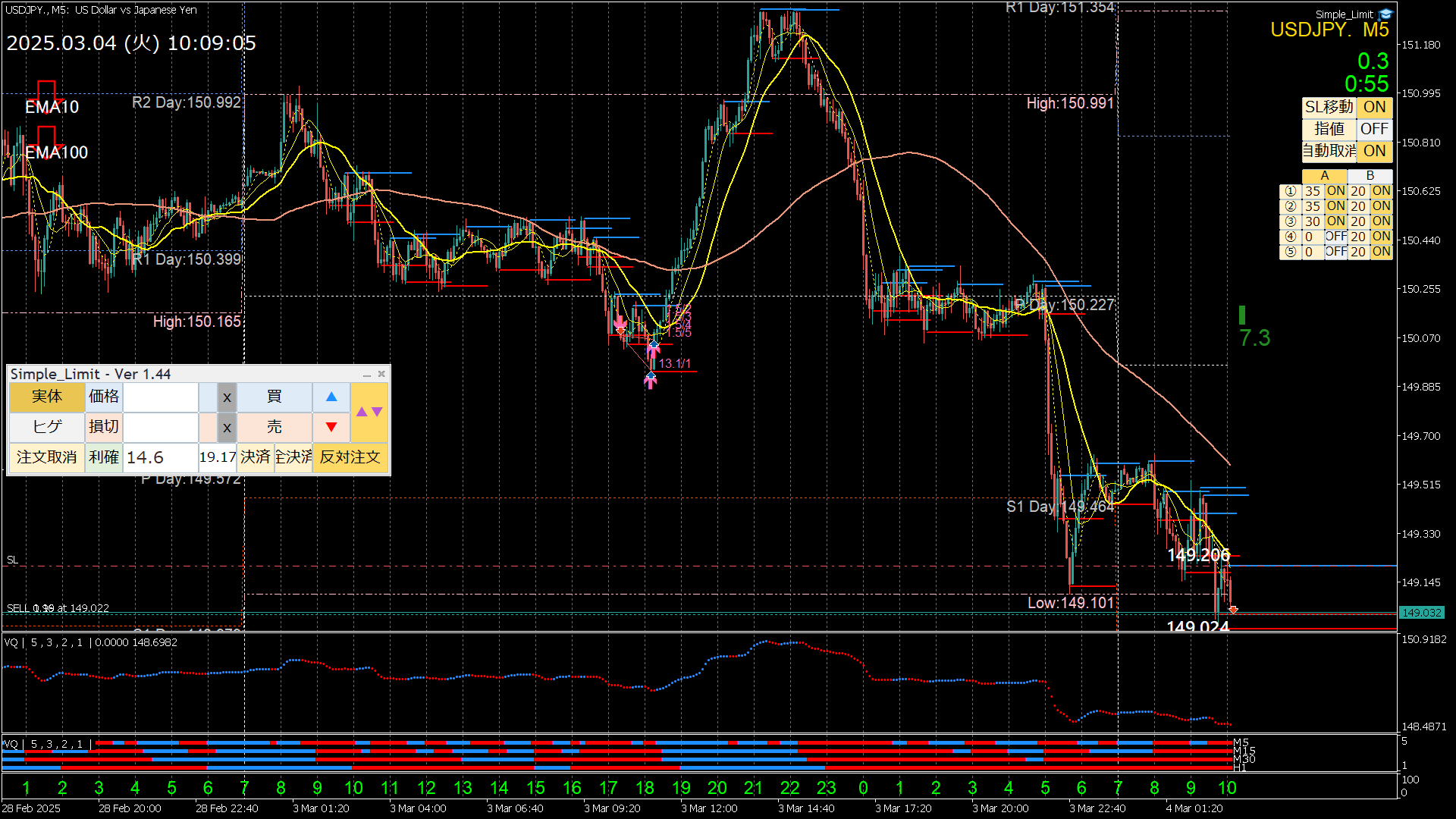FX 2025年1月23日 Trade2 USDJPY データ&考察 エントリー時間 16:48 EMA10/100 一致 揉み合い基準値 3.3 トレンド No(雲の中でもある) エントリー# ...